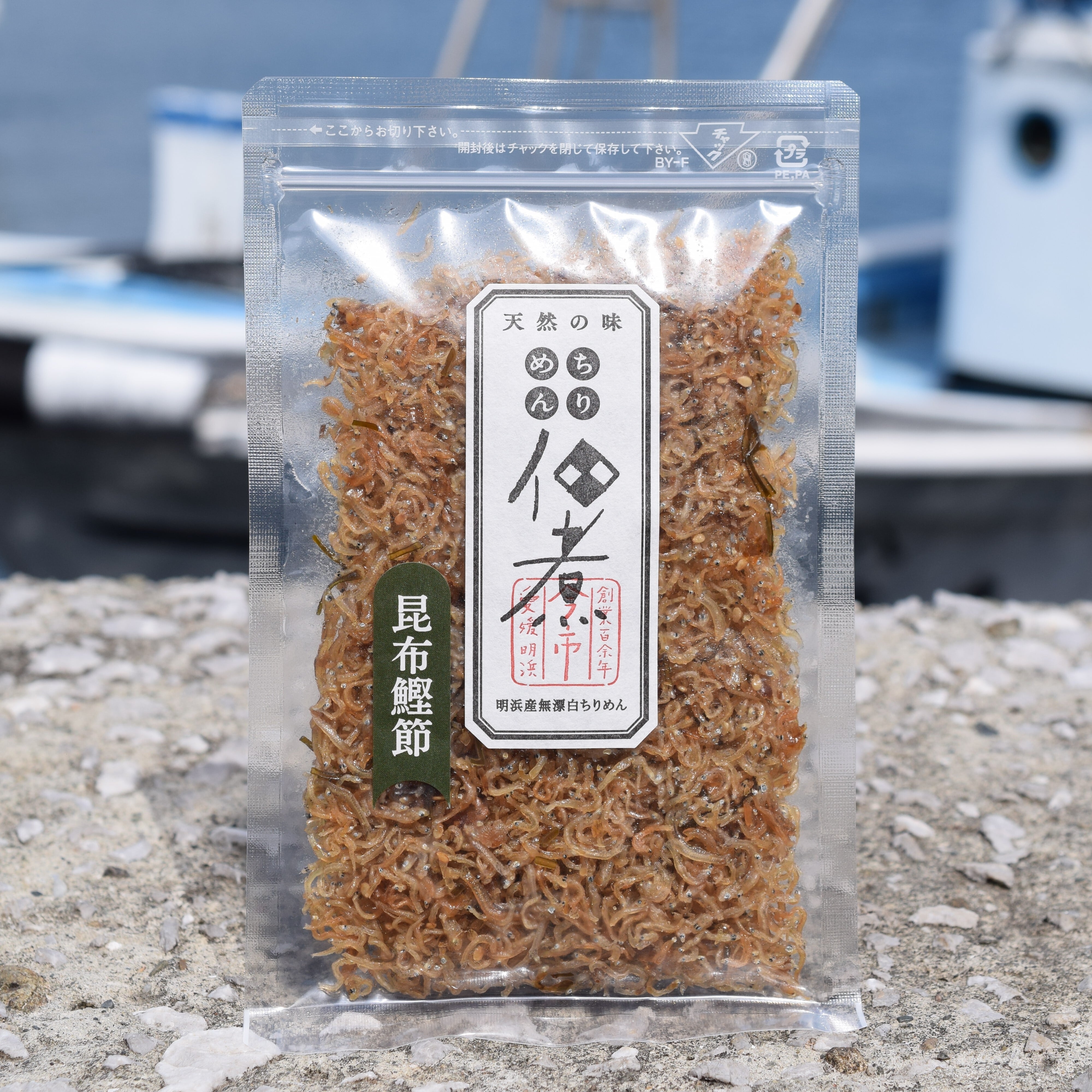 [原材料名]ちりめん、清酒、つゆ、みりん、醤油、砂糖、ごま、鰹節、昆布、生姜/調味料(アミノ酸等)・アルコール・(一部に小麦・さば・大豆・魚醤(魚介類)を含む)